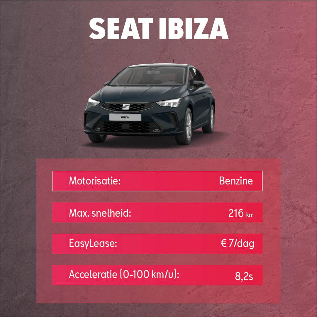 De SEAT Ibiza is jouw fighter voor het stadsleven: wendbaar, stijlvol en altijd klaar voor de volgende move.